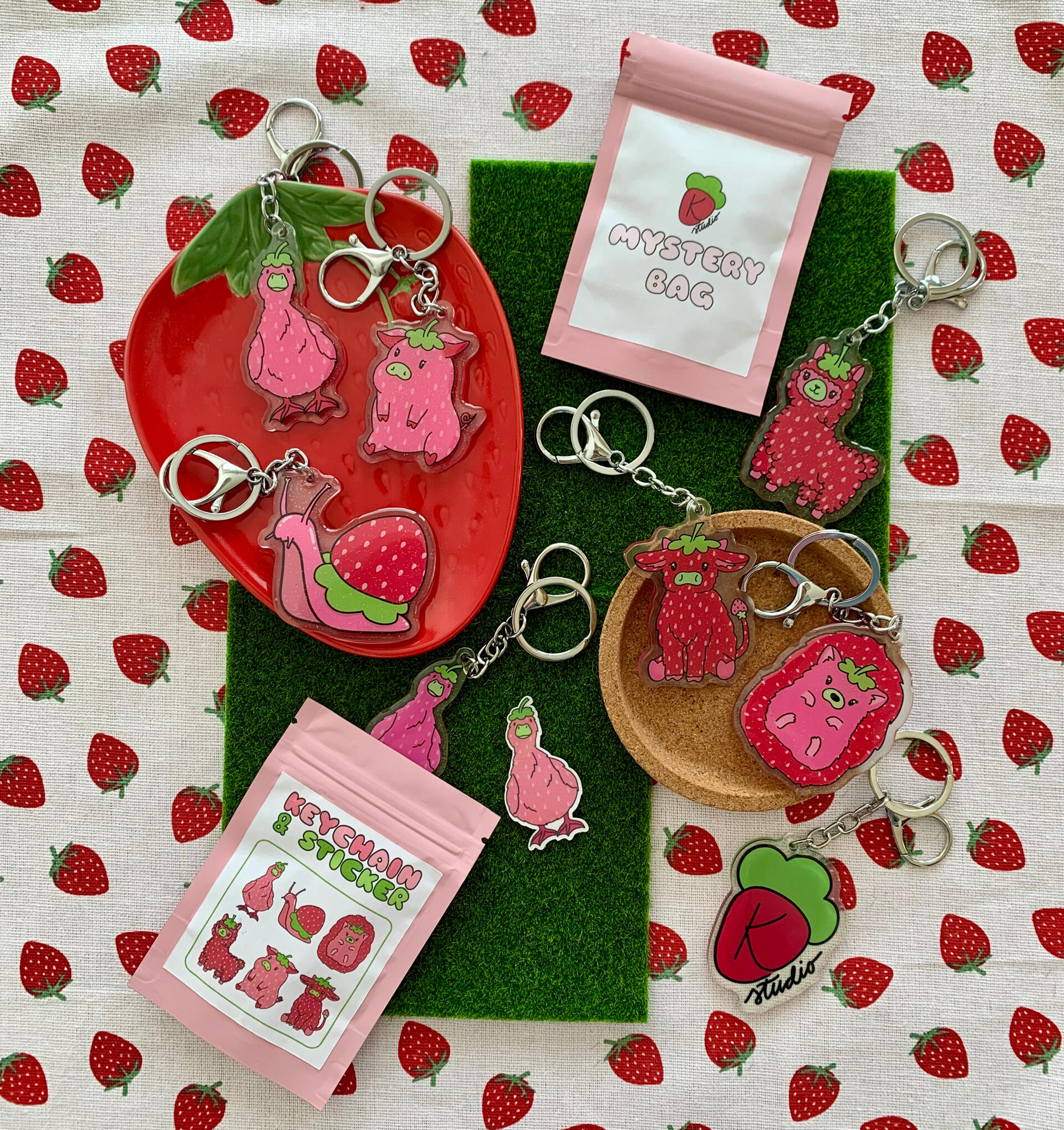 Behind KOstudio is a young ginger self taught artist that just wants to make others smile with her art.I started my small business in December of 2021 with greeting cards plus a few stickers and have since then grown with my art to offer keychains, pins, sticker packs and sticker albums plus even a few sewing items like tote bags and scrunchies. I make almost everything by myself at home with the help from my family who love to jump in to help.My inspiration for my art is mainly food and everyday items that we find in anime or at home as well as animals. My art style is simple and kawaii with lots of strawberries! 🍓